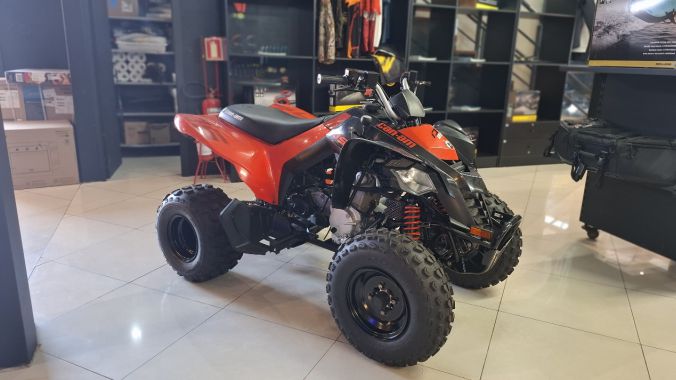 Quadriciclo Can-Am DS 250, ano 2023. Possui motor 4 tempos de 250 cc. Em excelente estado e pronto para muita diversão no off-road. Recomendado para maiores de 14 anos. Venha conferir!
