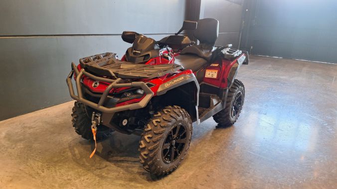 Quadriciclo Can-Am Outlander 850 Max ano 2024, com apenas 43 horas/689 km de uso. Equipado com motor ACE 850 cc, Direção Dinâmica Assistida (DPS), rack dianteiro e traseiro, rodas de liga-leve, pára-choque dianteiro e traseiro, guincho dianteiro, além de muito mais! Venha ver de perto!