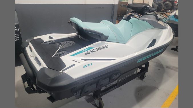 Moto-aquática Sea-Doo GTI 130 STD, ano 2024. Equipada com motor 1.630 ACE de 130 hp, sistema iBR de freio e reverso inteligentes, escada de reembarque e muito mais! Embarcação com apenas 18 horas de uso. Venha ver de perto e feche um excelente negócio!
