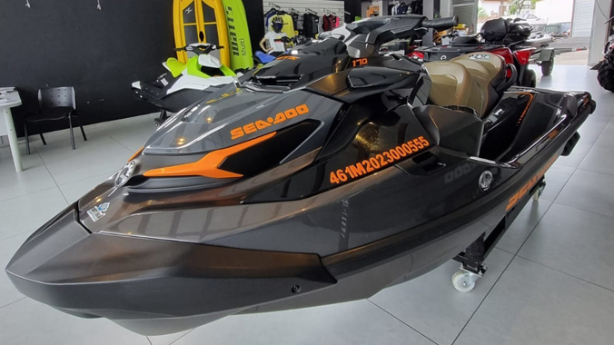 Moto aquática Sea-Doo GTX 170, ano 2023 com apenas 88 horas de uso. Equipada com motor Rotax 1630 ACE de 170 hp, sistema iBR de freio e reverso inteligentes, sistema de som Bluetooth, além de muito mais! Embarcação em excelente estado. Venha ver de perto e feche um excelente negócio!