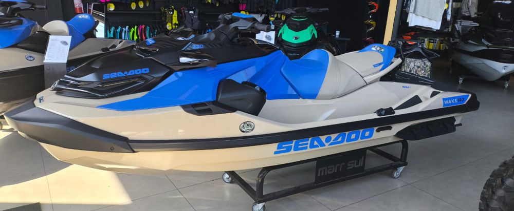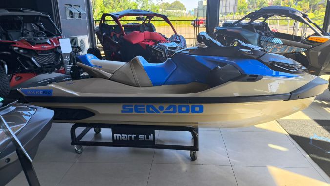 Moto-aquática Sea-Doo Wake Pro 230, ano 2025. Equipada com motor 1.630 ACE de 230 hp, sistema iBR de freio e reverso inteligentes, sistema de som Bluetooth, suporte para prancha de wakeboard, torre de esqui, escada de reembarque, e muito mais! Embarcação em excelente estado, com apenas 4 horas de uso! Venha ver de perto e feche um excelente negócio!