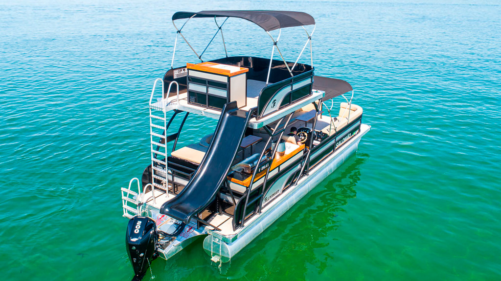Fluvimar F Boat 9500 Duplo Deck FICHA TÉCNICA Comprimento: 9,50 m (29,5 pés) Boca Máxima: 3,0 m Tipo de Casco: Trimarã Capacidade: 25+1 Tanque de Combustível: 300 litros Tanque de Água: 200 litros Peso Aproximado: 1.650 kg (Trimarã) Motorização: Popa de 200 a 325 hp Compartilhe: Veja também Fluvimar F Boat X Fluvimar F Boat 9500 Fluvimar F Boat 7500