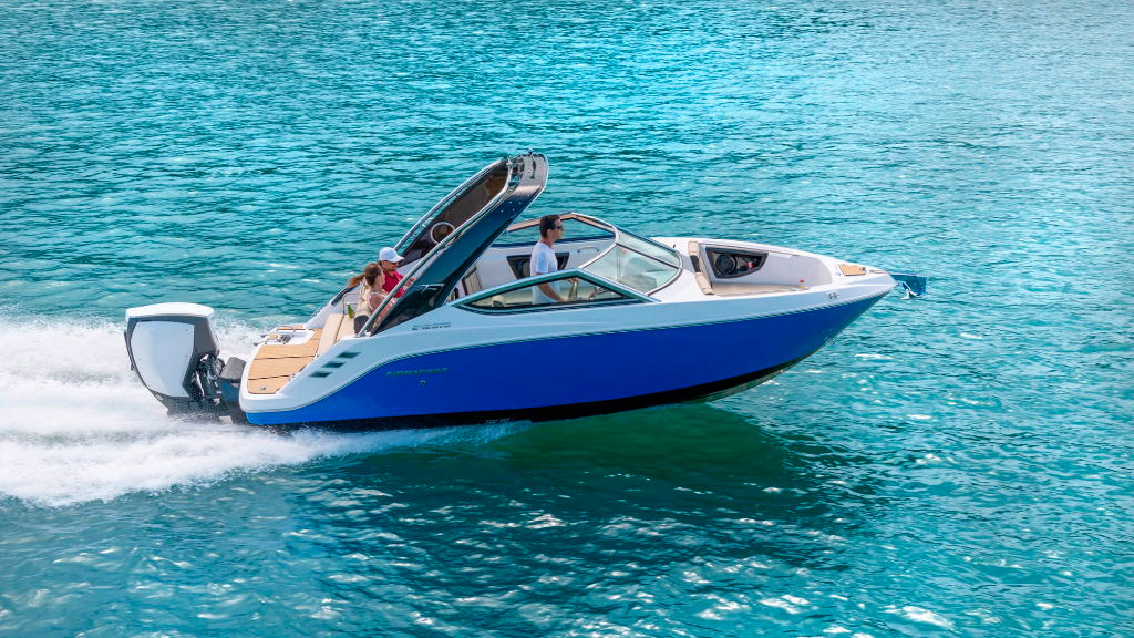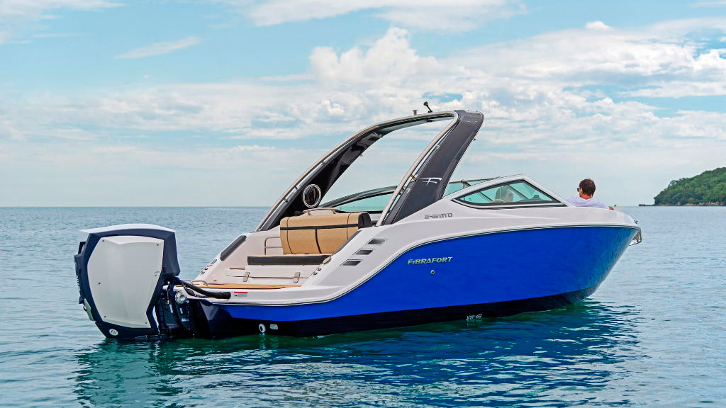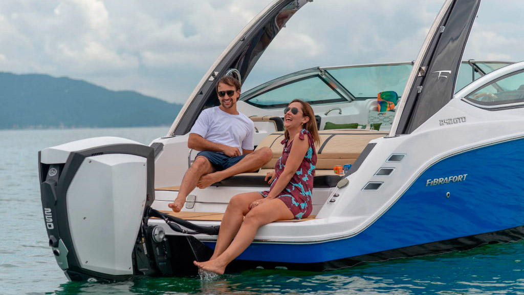 Indo ao encontro com as tendências do mercado náutico mundial, a Fibrafort apresenta a Focker 242 GTO com opção para motor de popa.