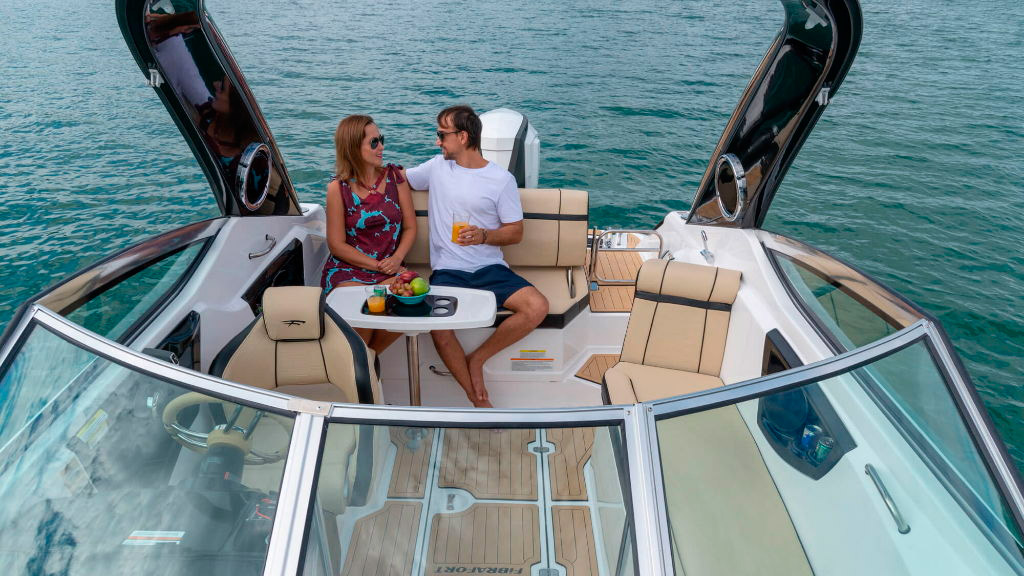 O novo conceito tem um grande diferencial: mantém o espaço da plataforma para atender o desejo do consumidor brasileiro que preza por essa área de lazer no barco, também na opção outboard.