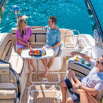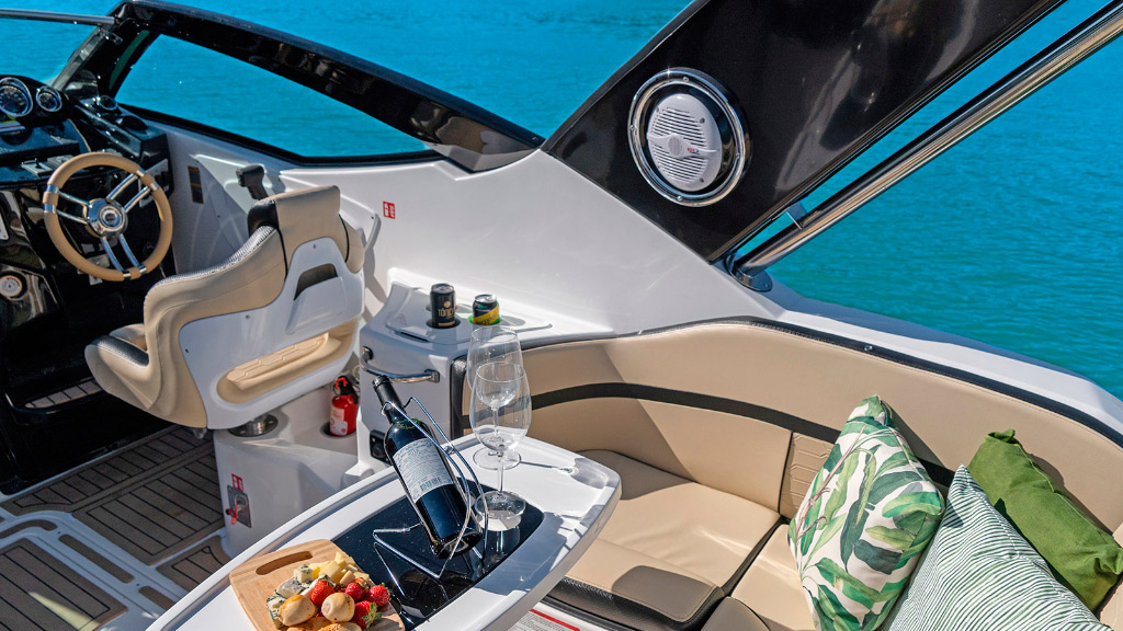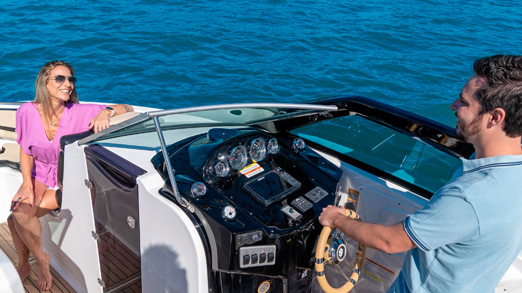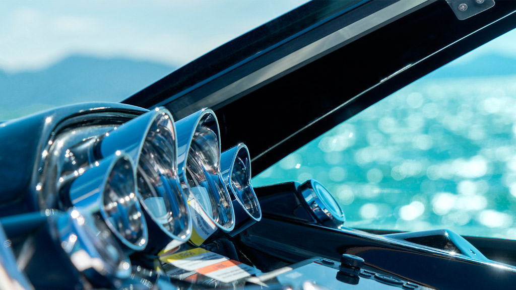 Espaço, exclusiva escada de popa e os detalhes funcionais enriquecem a experiência a bordo do cockpit que abriga até 14 pessoas com conforto. Suas linhas modernas tornam a focker 272 GTO um barco imponente e esportivo.