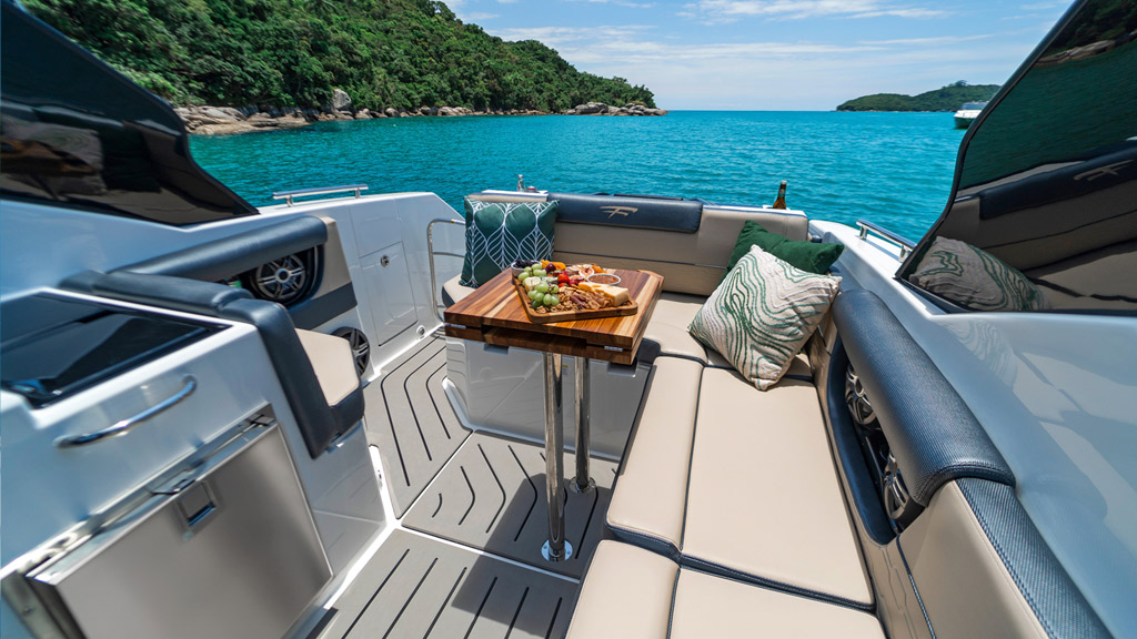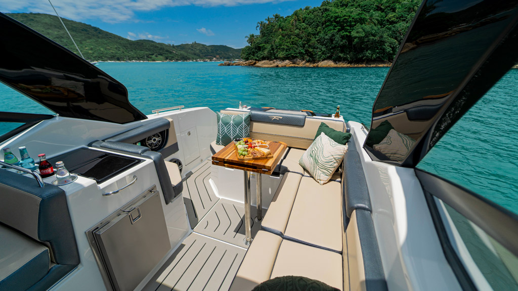 Elevando o conceito de lancha 30 pés, a Focker 300 envolve os sentidos com uma proposta de navegação moderna e tecnológica, através de um novo sistema de automação. Inspire-se com o design imponente e expressivo em cada detalhe, aproveite a liberdade do navegar na proa rebaixada e acomode-se na cabine completa do novo barco da nossa linha Cruiser.