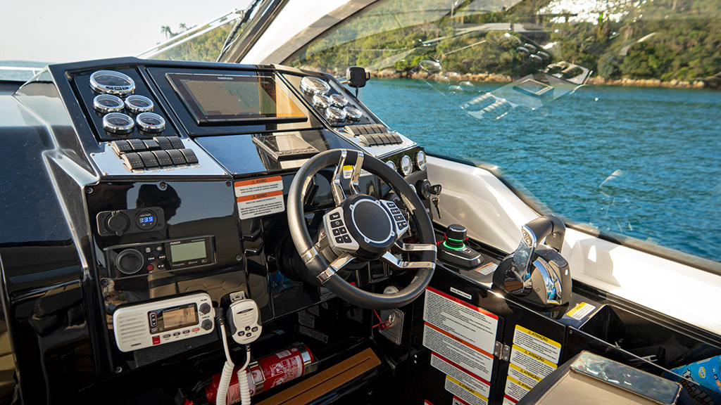 Teclas: Buzina, Blower, Bomba de água doce, Luz ancoragem, Luz navegação, Luz hard top, Luz do porão, Iluminação de proa