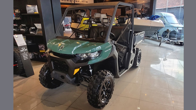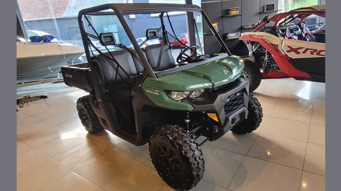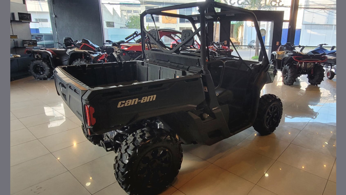 Can-Am Defender HD7 DPS, ano 2025. Um UTV focado em trabalho. Equipado com um valente motor ACE de 650 cc, direção dinâmica assistida (DPS), generosa caçamba de carga basculante, e teto. Unidade com apenas 5 horas/66 km de uso! Não perca esta oportunidade!