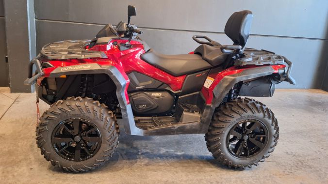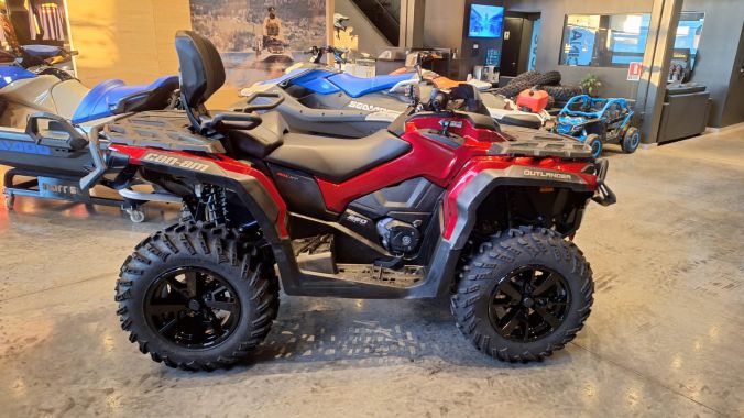 Quadriciclo Can-Am Outlander 850 Max ano 2024, com apenas 43 horas/689 km de uso. Equipado com motor ACE 850 cc, Direção Dinâmica Assistida (DPS), rack dianteiro e traseiro, rodas de liga-leve, pára-choque dianteiro e traseiro, guincho dianteiro, além de muito mais! Venha ver de perto!