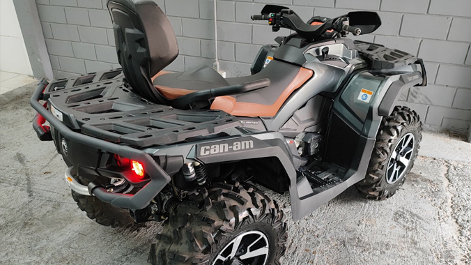 Este quadriciclo Can-Am Outlander Max Limited 1.000R ano 2024 está em excelente estado, com apenas 22 horas/280 km rodados. Equipado motor ACE 1.000R de 91 hp, conta com rack dianteiro e traseiro, pára-choques dianteiro e traseiro, rodas de liga leve, protetores para as mãos no guidão, guincho dianteiro, além de muito mais! Um veículo off-road com lugar para até 2 ocupantes que está preparado para enfrentar qualquer situação. Venha ver de perto!