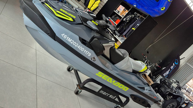 Moto aquática Sea-Doo RXT-X 325, modelo 2024. Equipada com motor ACE de 325 hp, sistema iBR de freio e reverso inteligentes, sistema de som Bluetooth, assento com sistema Ergolock, escada de reembarque e muito mais! Embarcação em excelente estado, com apenas 20 horas de uso. Venha ver de perto e feche um excelente negócio!