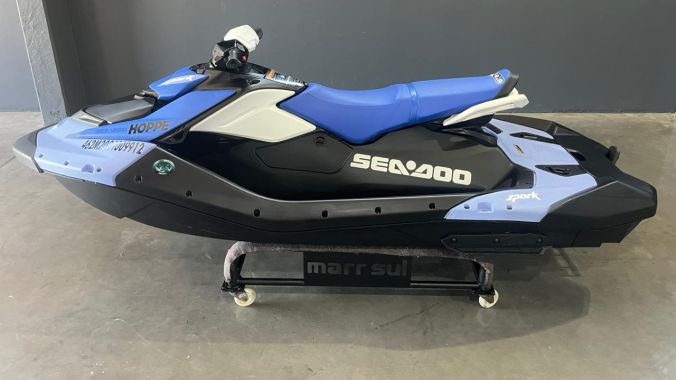 Moto aquática Sea-Doo Spark 2Up, ano 2024, em excelente estado, com apenas 23 horas de uso (painel novo consta 3.7 h). Uma embarcação que oferece muita diversão, além de ser fácil de manter e transportar. Equipado com motor ACE 900 com 90 HP, Sistema iBR (Neutro/Freio/Ré), baú, escada de reembarque, plataforma, além de muito mais! Não perca esta oportunidade!